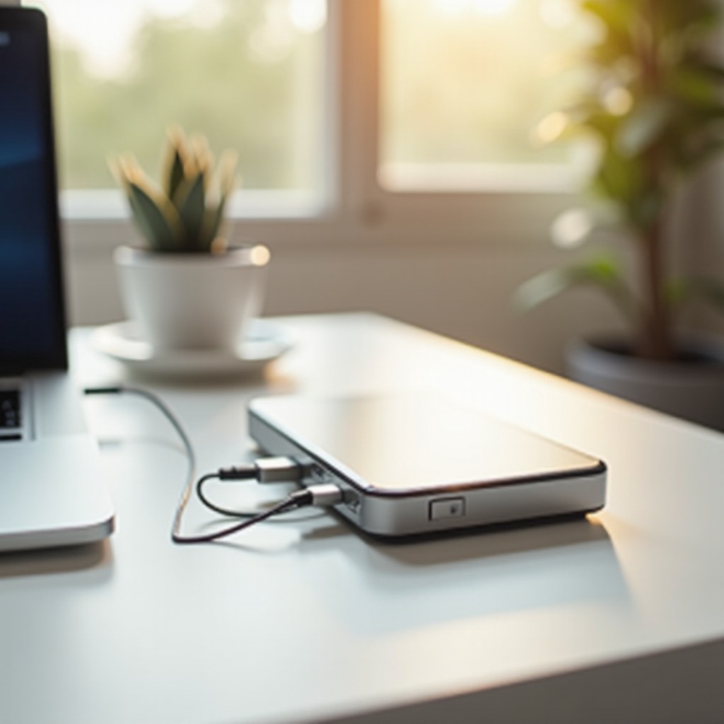 使用USB線將外置硬碟插入電腦,確認其已被識別並且可用。